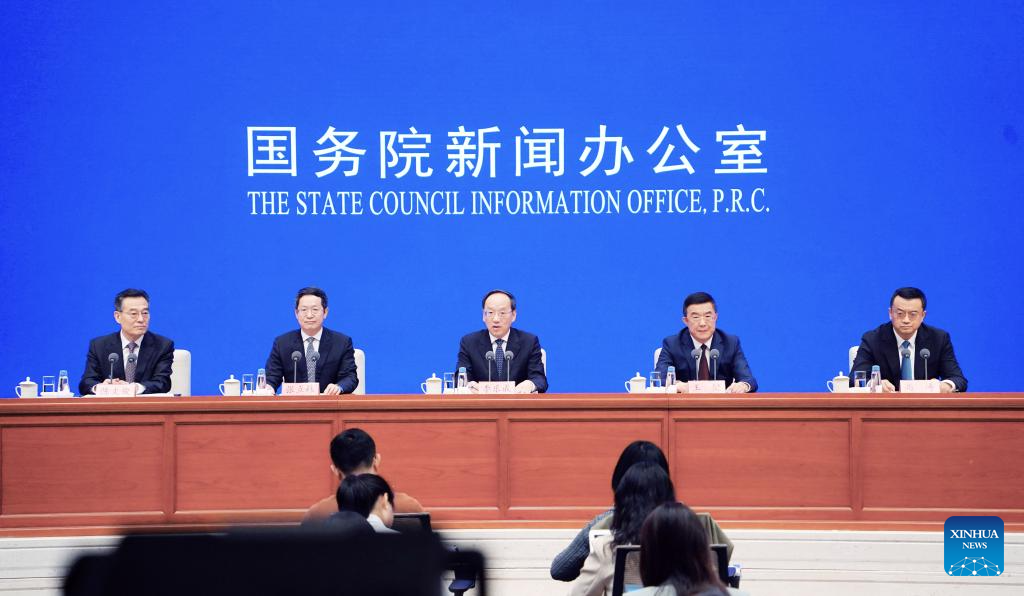 Provincial officials of northeast China's Liaoning Province attend a press briefing on writing a new chapter in Liaoning's full revitalization with greater responsibilities and efforts in Beijing, capital of China, April 23, 2024. (Xinhua/Pan Xu)