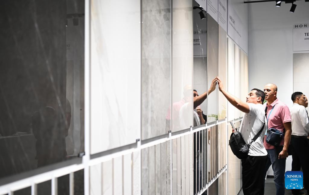 Purchasers visit a booth of building materials at the second phase of the 135th Canton Fair in Guangzhou, south China's Guangdong Province, April 23, 2024. The second phase of the 135th Canton Fair opened in Guangzhou on Tuesday focusing on displaying products such as household goods, gifts, decorations, building materials and furniture with an exhibition area of about 515,000 square meters. (Xinhua/Deng Hua)