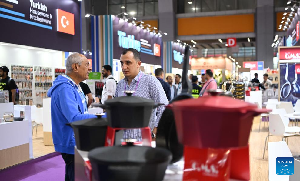 This photo taken on April 23, 2024 shows a booth of a Turkish kitchenware company at the import area of the second phase of the 135th Canton Fair in Guangzhou, south China's Guangdong Province. The second phase of the 135th Canton Fair opened in Guangzhou on Tuesday focusing on displaying products such as household goods, gifts, decorations, building materials and furniture with an exhibition area of about 515,000 square meters. (Xinhua/Deng Hua)