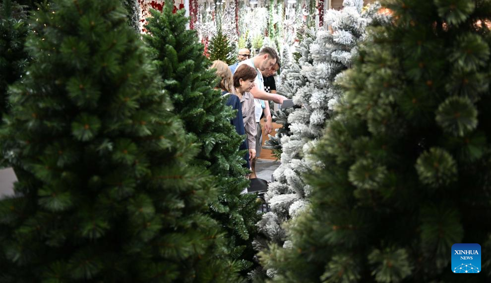Purchasers visit a booth of artificial trees at the second phase of the 135th Canton Fair in Guangzhou, south China's Guangdong Province, April 23, 2024. The second phase of the 135th Canton Fair opened in Guangzhou on Tuesday focusing on displaying products such as household goods, gifts, decorations, building materials and furniture with an exhibition area of about 515,000 square meters. (Xinhua/Deng Hua)