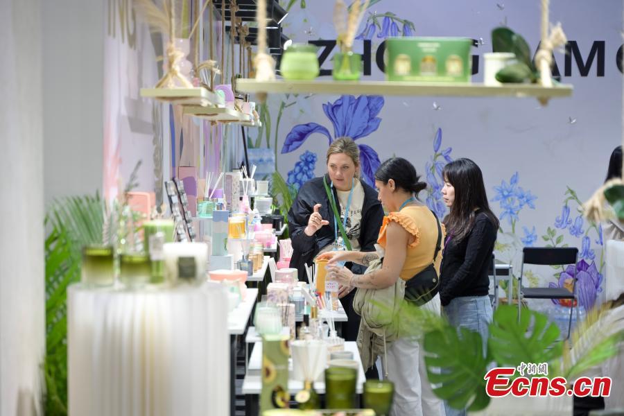 A purchasing agent(on the right) selects products in the home decor section in the second phase of the 135th Canton Fair in Guangzhou, south China's Guangdong province, April 23, 2024. (Photo: China News Service/Chen Jimin)