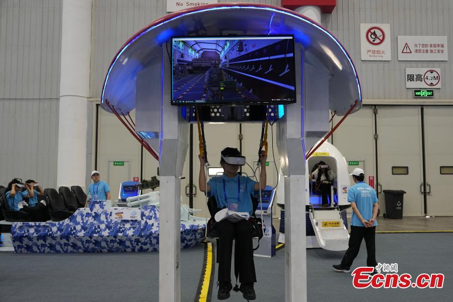 Volunteers experience deep-sea themed VR equipment on an exhibition to celebrate the Space Day of China in Wuhan, Central China's Hubei Province, April 23, 2024. (Photo: China News Service/Cui Nan)