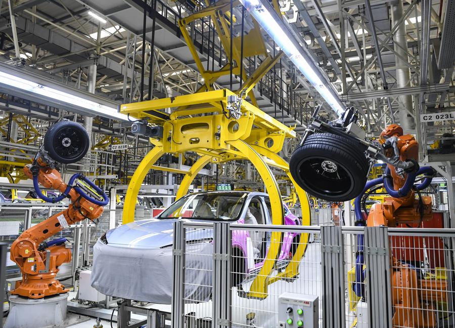 This photo taken on June 27, 2022 shows a vehicle being assembled at a smart factory of Chinese vehicle manufacturer Seres Group in Liangjiang New Area, southwest China's Chongqing Municipality. (Xinhua/Wang Quanchao)