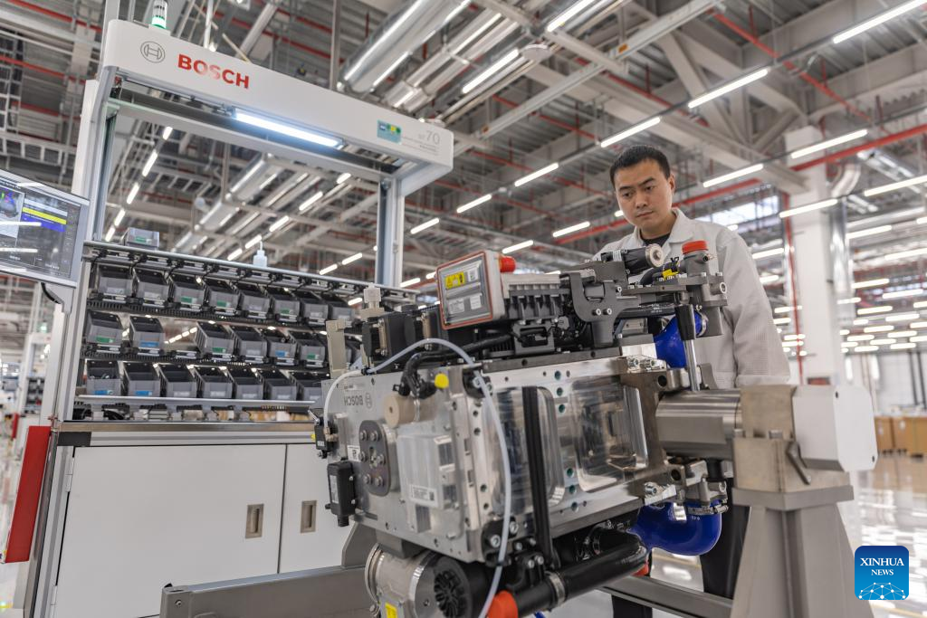 Workers work at Bosch Hydrogen Powertrain Systems (Chongqing) Co., Ltd. in southwest China's Chongqing Municipality, April 19, 2024. (Xinhua/Huang Wei)
