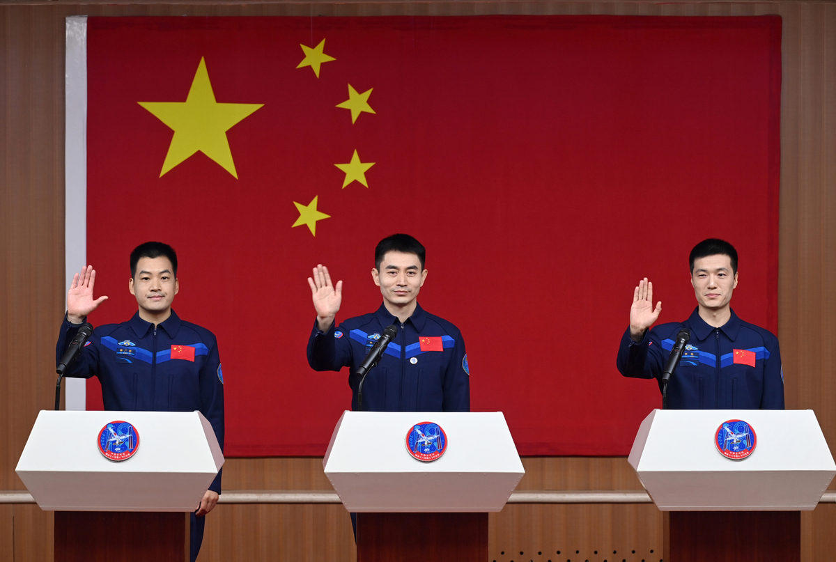 The crew members will be Ye Guangfu, Li Cong and Li Guangsu, with Ye as the mission commander. Ye was also a crew member of Shenzhou XIII. And it will be Li Cong and Li Guangsu's first space flight, Lin Xiqiang, spokesman of the mission, said at Jiuquan Satellite Launch Center during a news conference.