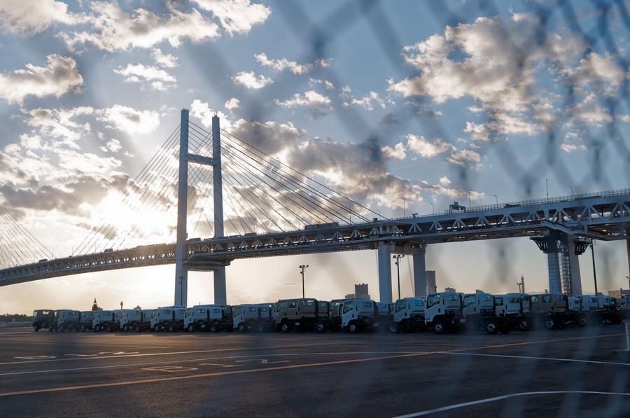 This photo taken on Nov. 14, 2023 shows a distribution center for automotive foreign trade in Yokohama, Japan. (Xinhua/Zhang Xiaoyu)