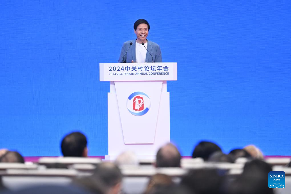 Lei Jun, founder and CEO of Xiaomi, speaks at the 2024 Zhongguancun Forum (ZGC Forum) Annual Conference in Beijing, capital of China, April 25, 2024. (Xinhua/Li Xin)