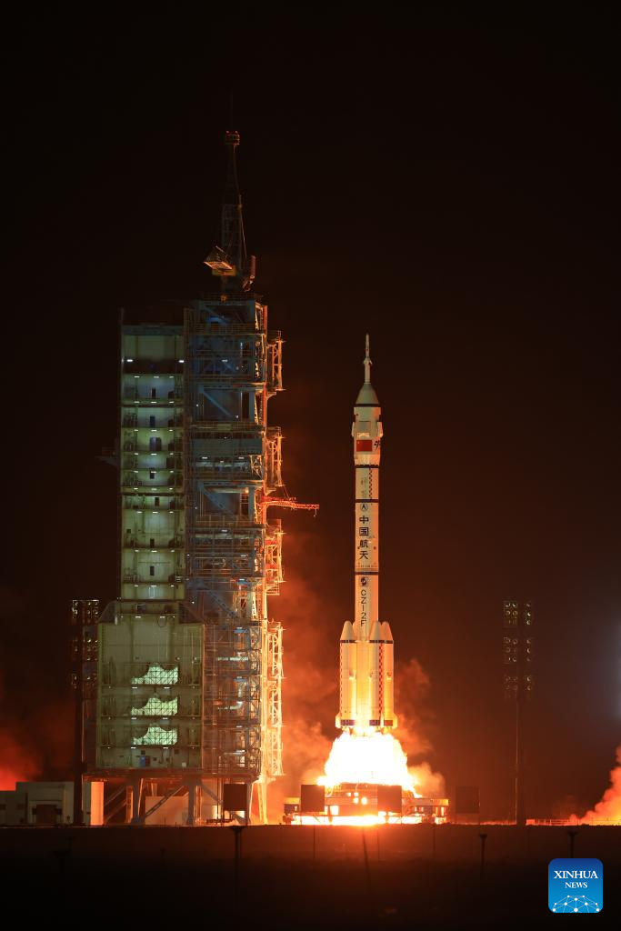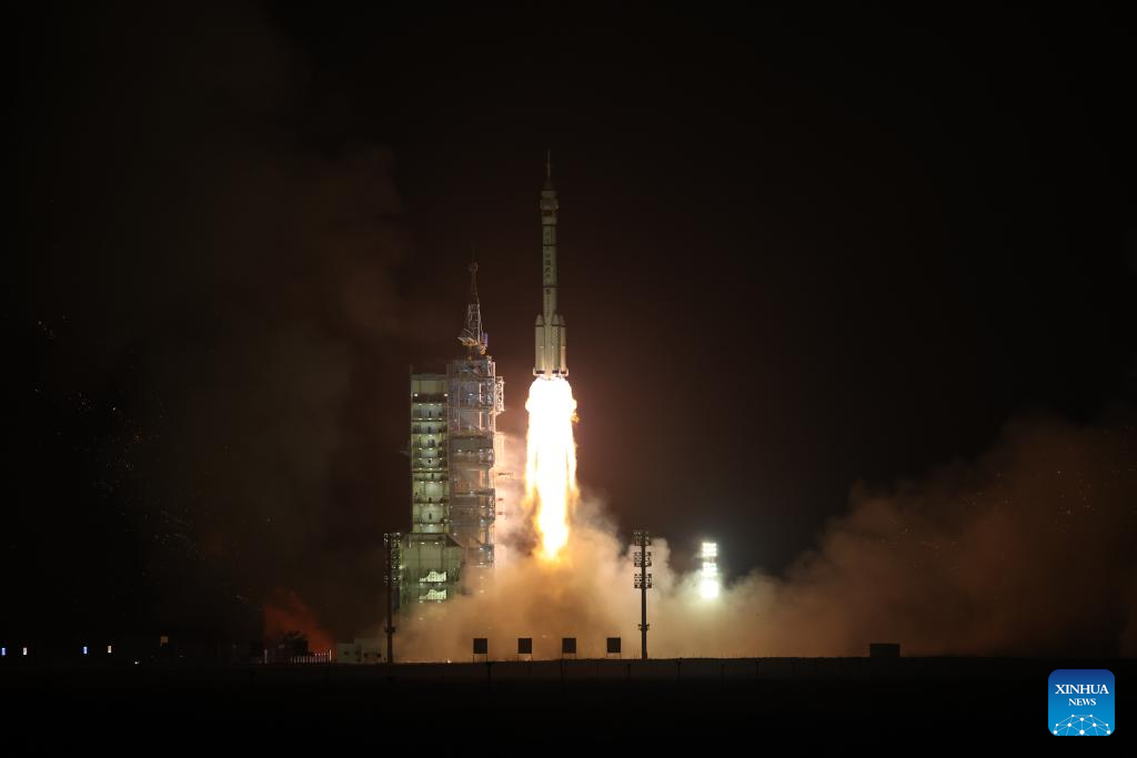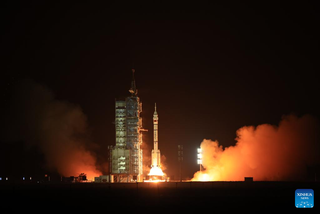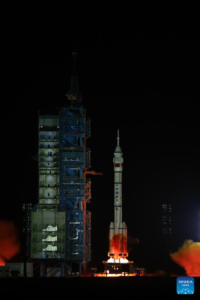 The Shenzhou-18 manned spaceship, atop a Long March-2F carrier rocket, is launched from the Jiuquan Satellite Launch Center in northwest China, April 25, 2024. (Xinhua/Lian Zhen)