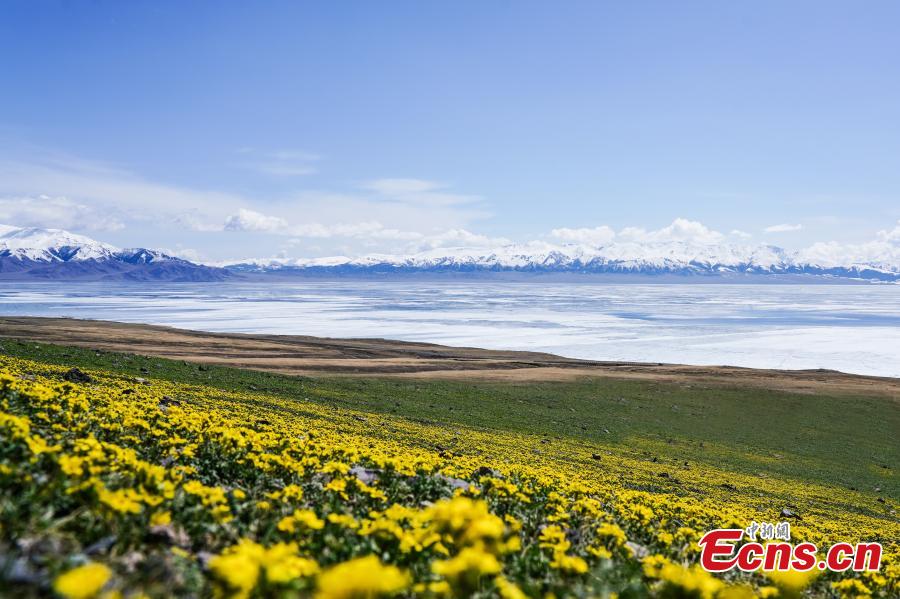 Blooming flowers along the shore of Sayram Lake, adding colors to the alpine lake in northwest China's Xinjiang Uygur Autonomous Region. (Photo: China News Service/Zhong Dawei)