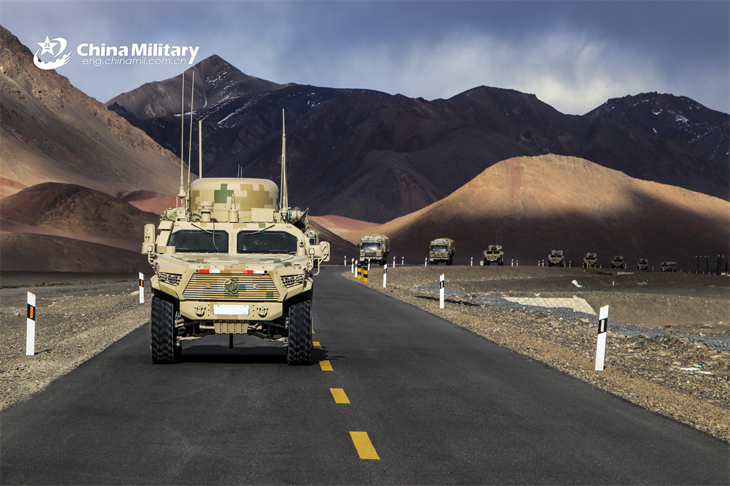 A convoy of military trucks attached to a regiment under the PLA Army is en route to the designated training field during a driving skill training exercise on April 12, 2024. (eng.chinamil.com.cn/Photo by Liu Jintao)