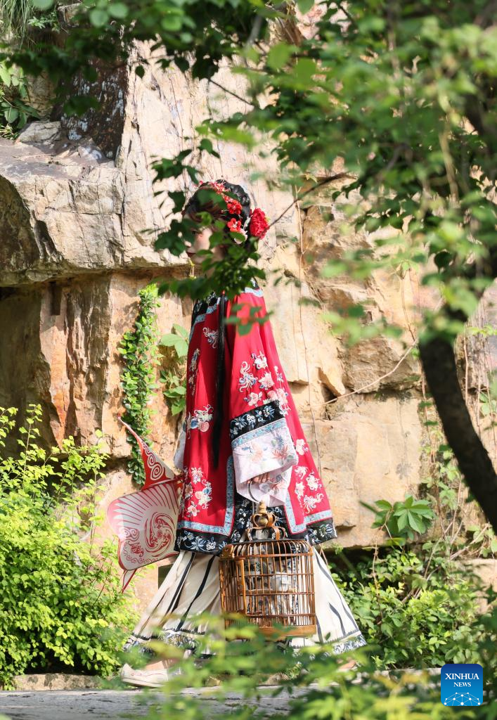 An actor performs at the Puyuan Fashion Resort in Jiaxing of east China's Zhejiang Province, April 26, 2024. Paying tribute to the elegant aesthetics of the Song Dynasty (960-1279), the heyday of ancient Chinese art, while combing modern elements, the Puyuan Fashion Resort in Jiaxing of east China's Zhejiang Province offers an immersive cultural travel experience to visitors, ranging from Hanfu fashion shows to themed markets, concerts and sports games. (Xinhua/Mu Yu)