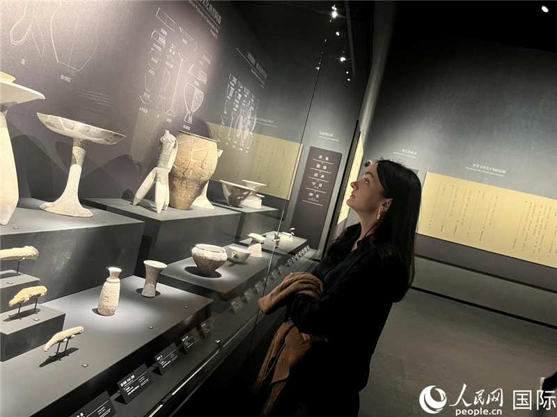 Olga from Belarus visits the Sanxingdui Museum. (People's Daily Online/Wang Yuheng)