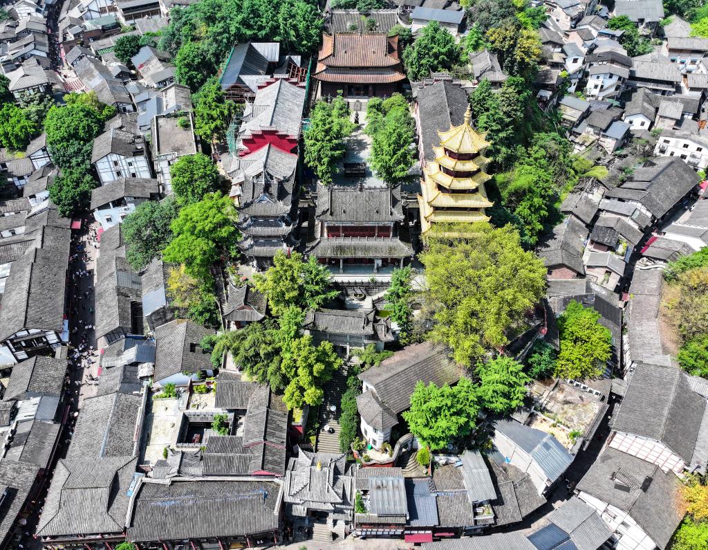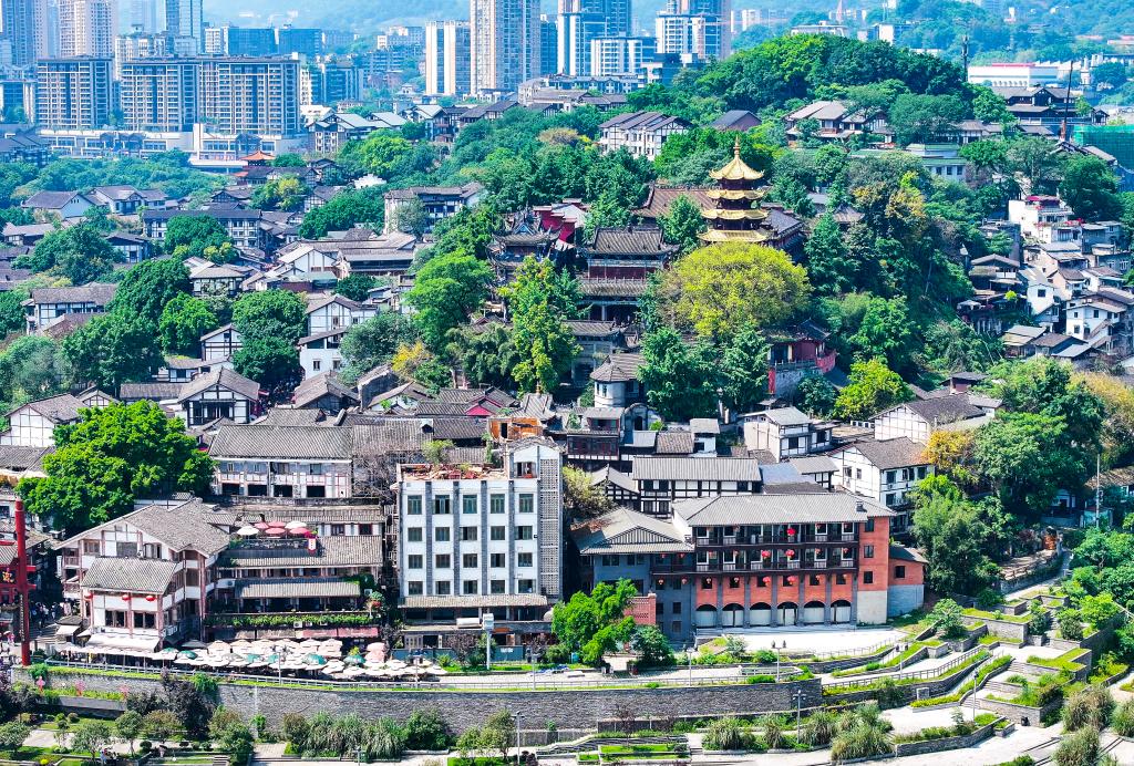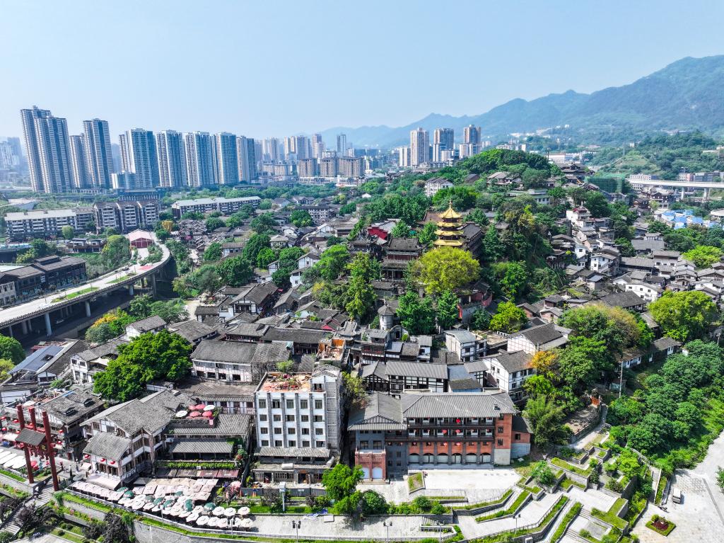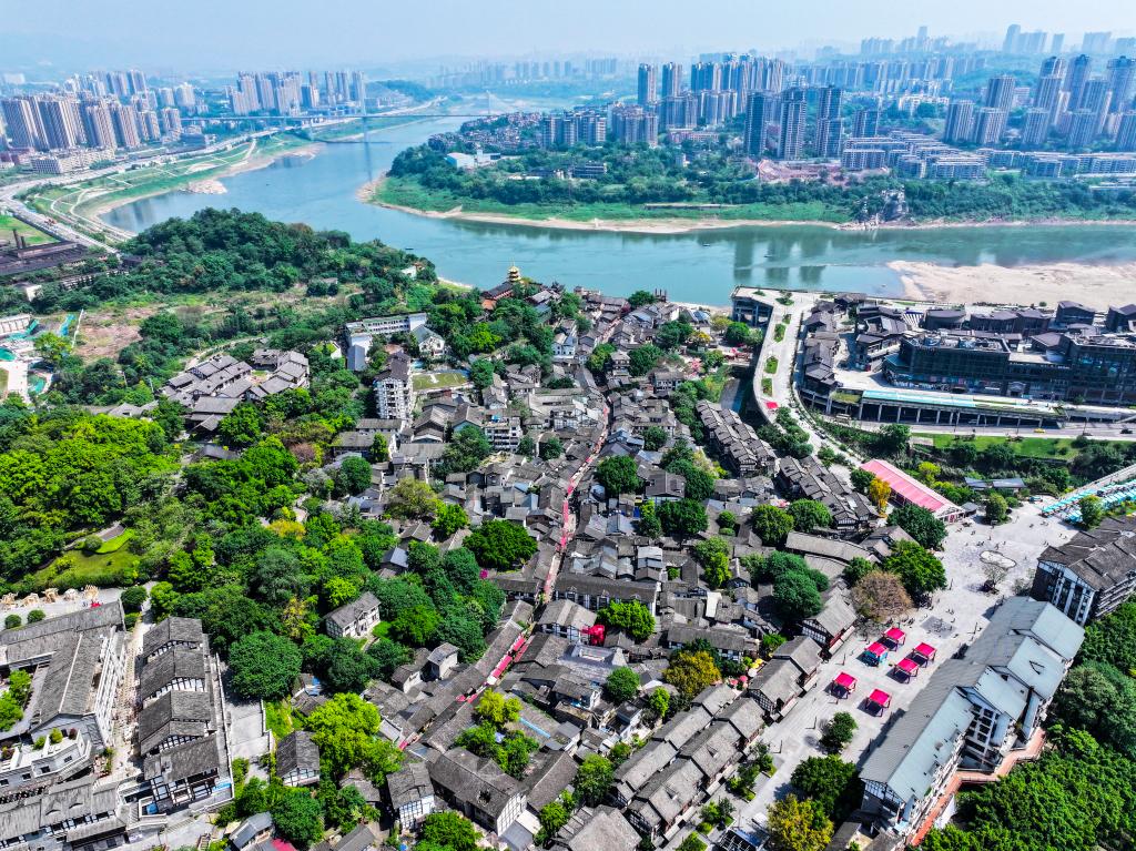 An aerial drone photo taken on April 28, 2024 shows a view of the Ciqikou ancient town in southwest China's Chongqing Municipality. (Xinhua/Wang Quanchao)