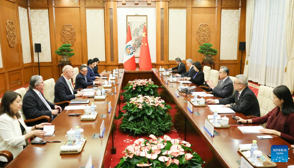 China stands ready to work with Peru to implement the important consensus reached by the two heads of state, carry forward the traditional friendship, promote high-quality and mutually beneficial cooperation with a high level of political mutual trust, and push the China-Peru comprehensive strategic partnership to a new level, Wang said.