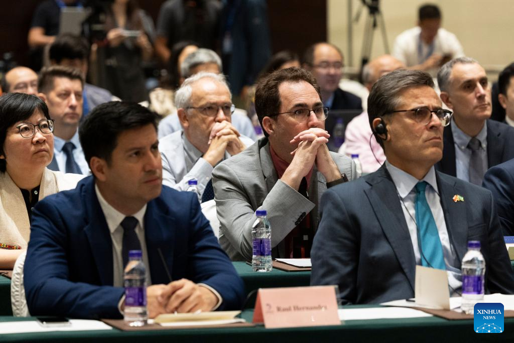 Guests listen to a report at a workshop focusing on the international payloads carried by Chang'e-6 in Haikou, south China's Hainan Province, May 3, 2024. Guests invited by the China National Space Administration (CNSA) attended a workshop focusing on the international payloads carried by Chang'e-6 here on Friday. (Xinhua/Jin Liwang)