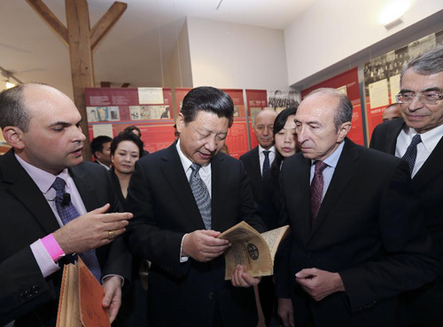 President Xi Jinping visits the former site of the Lyon Sino-French Institute, France, March 26, 2014. (Photo: Lan Hongguang/ Xinhua)
