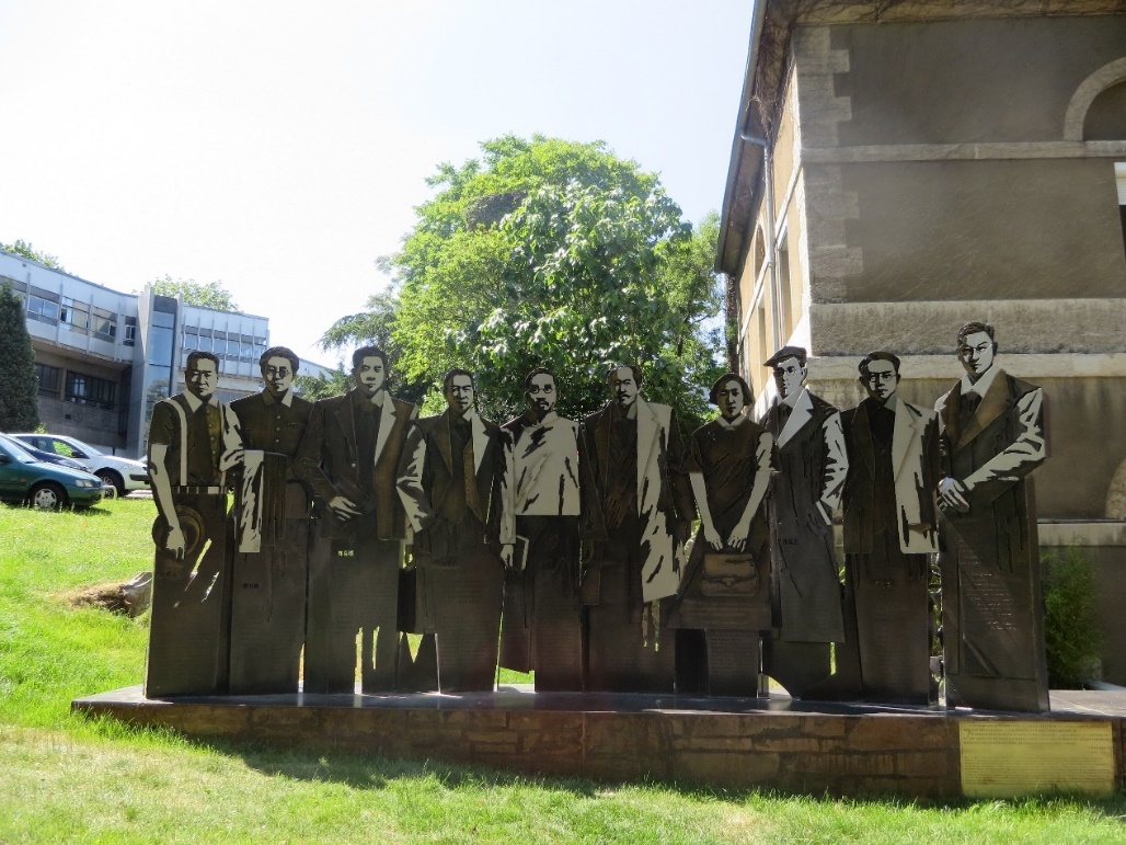Pictured are bronze statues of prominent Chinese figures at the Lyon Sino-French Institute. (Photo: Xing Xue/ People's Daily)