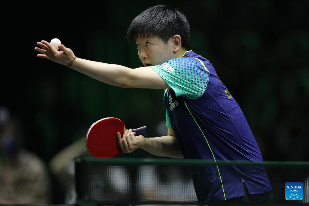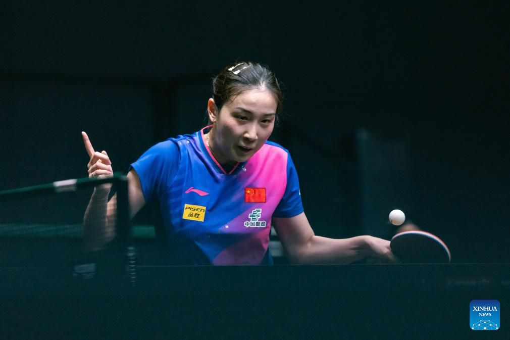 Sun Yingsha of China serves during the women's singles round of 64 match against Liu Hsing-Yin of Chinese Taipei at WTT Saudi Smash 2024 in Jeddah, Saudi Arabia, May 5, 2024. (Xinhua/WTT)