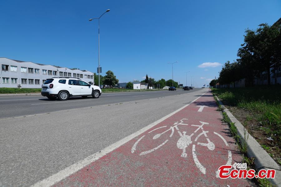 Vehicles run on the Zemun-Borca Bridge in Belgrade, Serbia, May 5, 2024. (Photo: China News Service/Han Haidan)