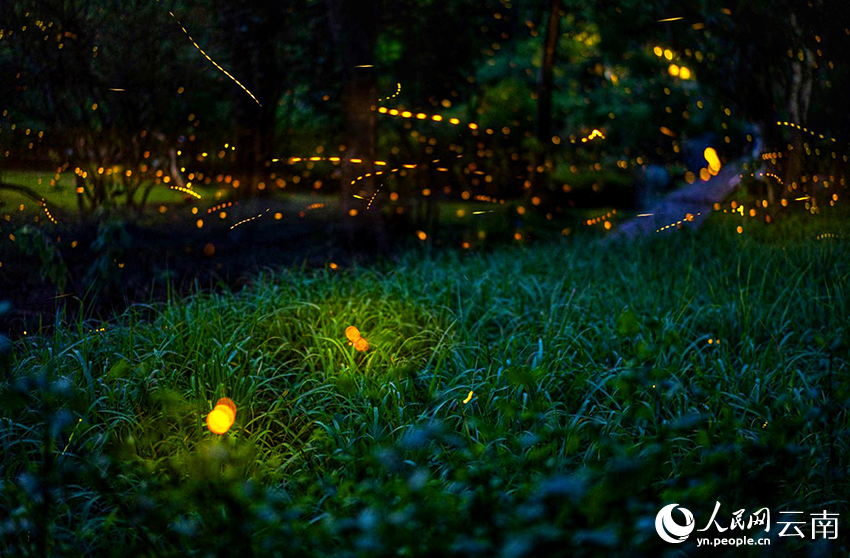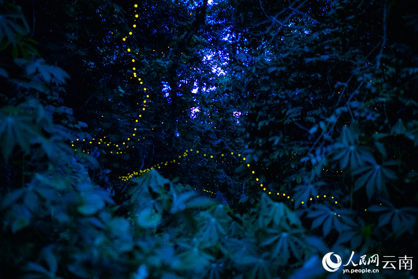 Photo shows fireflies at the Xishuangbanna Tropical Botanical Garden of Chinese Academy of Sciences. (Photo/Zhang Jiaojiao)