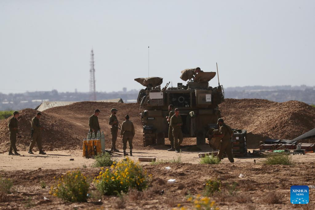 Israeli troops are deployed near the Kerem Shalom crossing in southern Israel, on May 8, 2024. Israel's army announced on Wednesday that it was continuing its ground assault on Gaza's Rafah, reporting approximately 30 casualties since the offensive began on Monday night. According to an army statement, the 30 casualties were militants, while Gaza health officials reported about 35 deaths, including a four-month-old baby. (Photo by Jamal Awad/Xinhua)