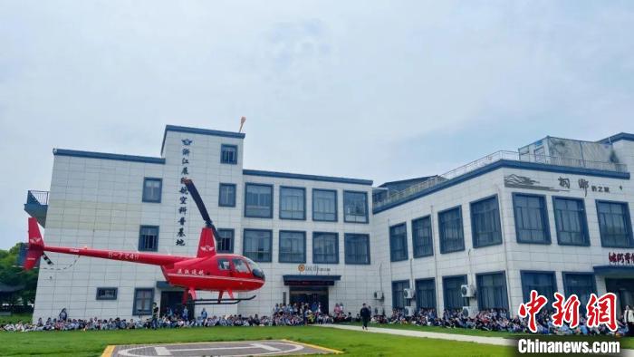 At a helicopter base in Jiaxing city, Zhejiang Province, a red and stylish helicopter slowly took off under the command of a ground crew member.