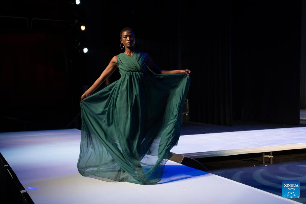 A model presents a creation at Soweto Fashion Week in Soweto, Johannesburg, South Africa, on May 8, 2024. (Photo by Ihsaan Haffejee/Xinhua)