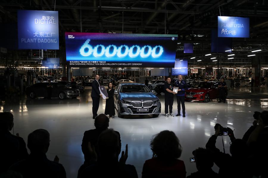 SHENYANG, May 9 (Xinhua) -- A BMW i5 electric car rolled off the assembly line on Wednesday in northeast China's Shenyang, the capital city of Liaoning Province, marking the 6 millionth car produced by BMW Group's joint venture in China, BMW Brilliance Automotive (BBA).