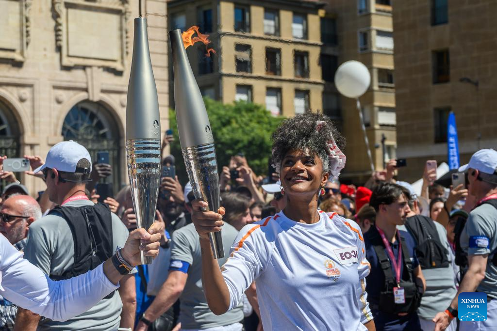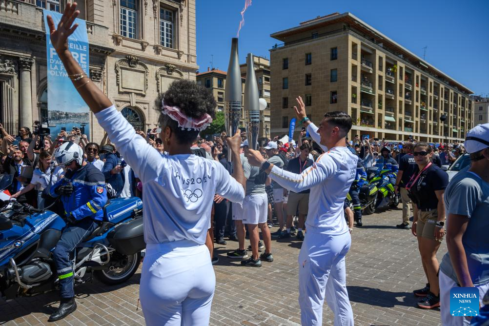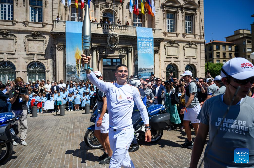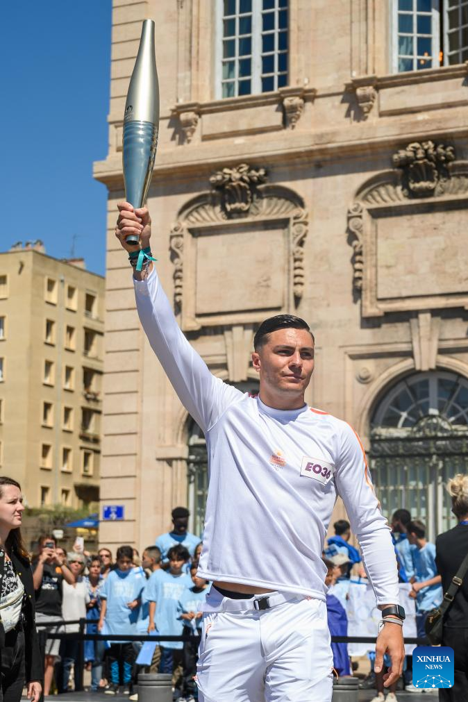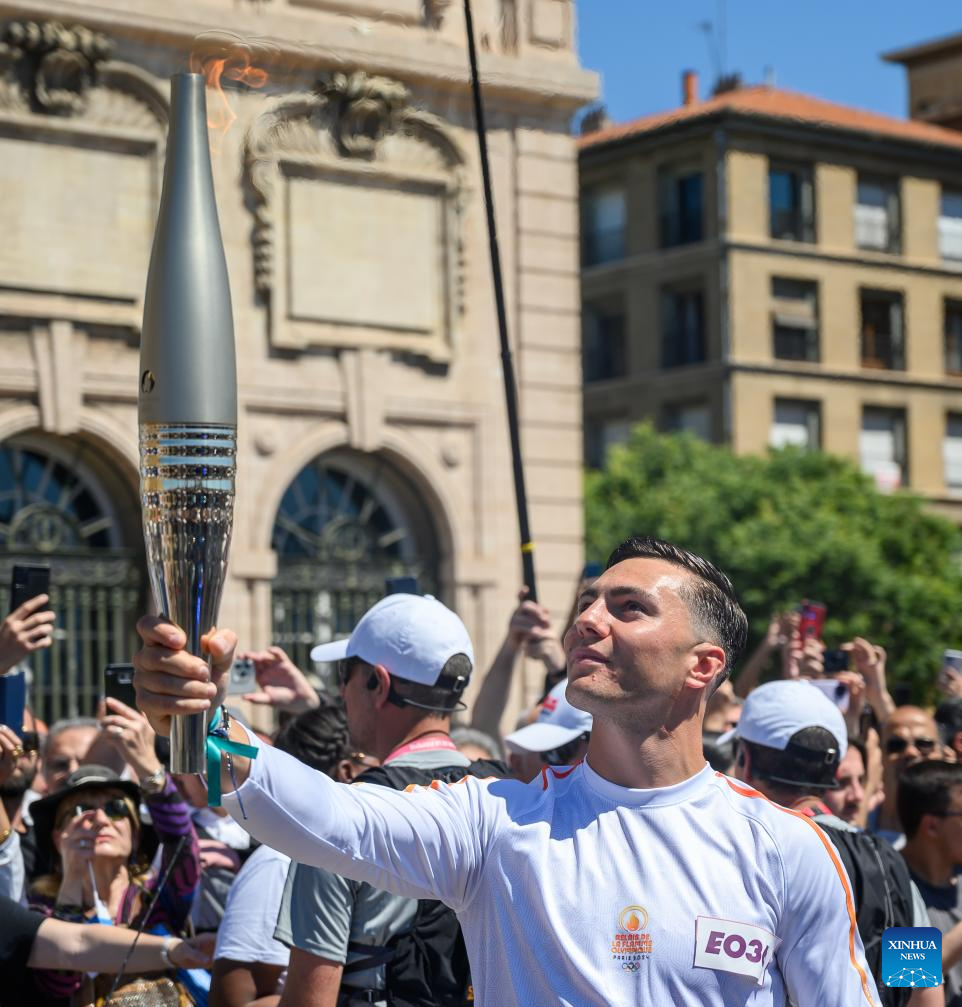 MARSEILLE, France, May 9 (Xinhua) -- Following the arrival of the Olympic torch at the Vieux Port the day before, the relay kicked off its first stop on French soil in Marseille on Thursday which was imbued with elements of football club Olympique de Marseille.