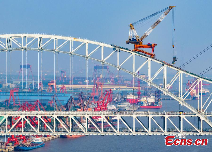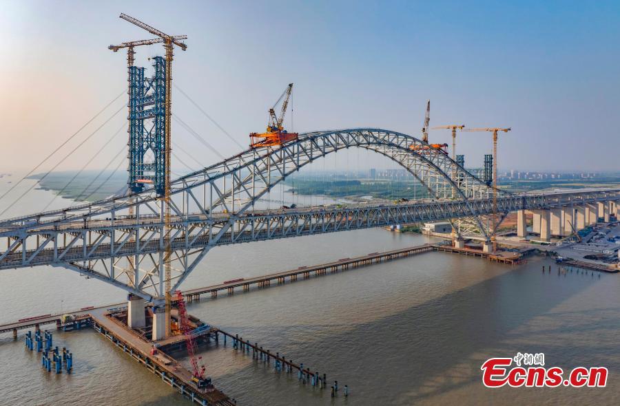 The construction site of the Changtai Yangtze River Bridge in Changzhou, east China's Jiangsu Province, May 10, 2024. (Photo: China News Service/Yang Bo)