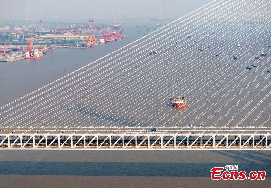 The Changtai Yangtze River Bridge, which connects Changzhou and Taixing cities, is 10.03 kilometers long in Jiangsu Province. The complex is the world's first cross-river facility combining highway, intercity railway and ordinary roads.