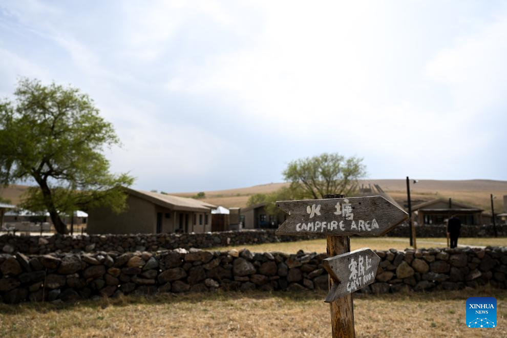 This photo taken on May 10, 2024 shows a grassland homestay on the Ulan Mod grassland, located in Horqin Right Wing Front Banner, Hinggan League of north China's Inner Mongolia Autonomous Region. In recent years, a grassland homestay cluster in Hinggan League of north China's Inner Mongolia Autonomous Region, has become a new driving force for the high quality development of grassland tourism. The cluster concludes homestays, hotels, libraries, bakeries, cafes, art galleries and other facilities with modern and traditional elements, providing a place for tourists to relax and enjoy the scenery of the Ulan Mod grassland. (Xinhua/Bei He)