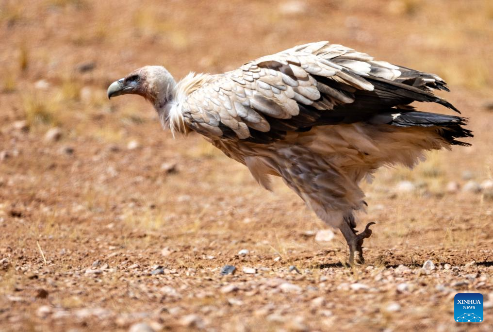 This photo taken on May 12, 2024 shows a Himalayan vulture at the Changtang National Nature Reserve in Nyima County of Nagqu City, southwest China's Xizang Autonomous Region. Dubbed the "paradise of wild animals," Changtang National Nature Reserve is home to over 30 kinds of wild animals listed on China's national-level protection catalogue, including Tibetan antelopes and wild yaks. (Xinhua/Jiang Fan)