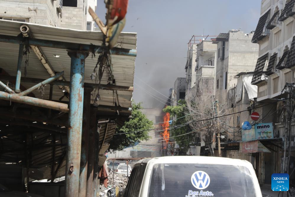 JERUSALEM, May 13 (Xinhua) -- The Israeli army said on Monday that it has intensified its offensive from north to south in the Gaza Strip, targeting 120 sites in Rafah city, the neighborhoods of Jabaliya and Zeitoun in Gaza City.