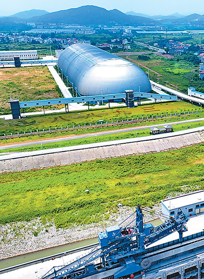 Photo shows a smart "capsule" warehouse, which ensures more eco-friendly operations and contributes to protecting the ecological environment of the Yangtze River, at the Jiujiang port in Chaisang district, Jiujiang city, east China's Jiangxi Province. (Photo/Zhu Haipeng)