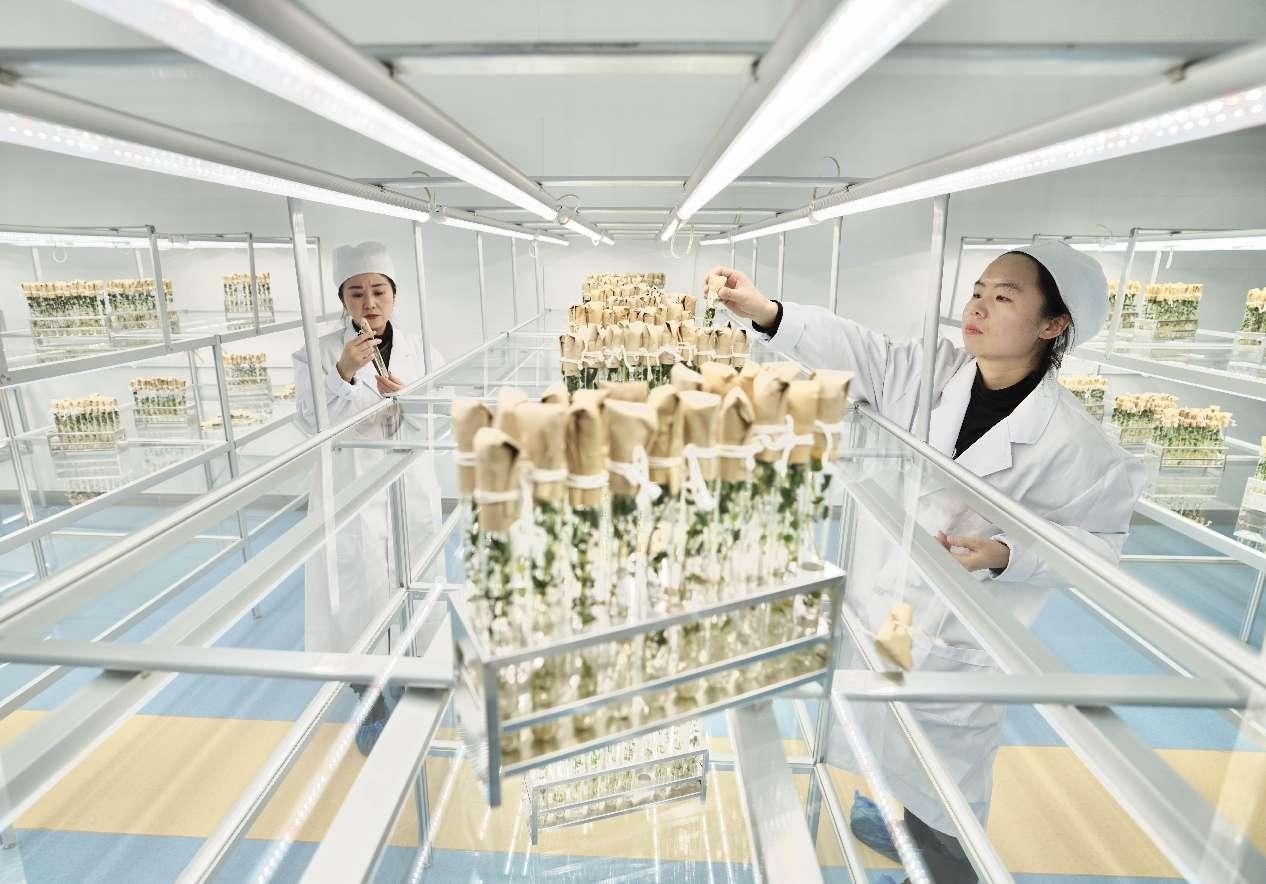 Researchers observe space-exposed potato seeds at a potato technology innovation center in Shangdu county, north China's Inner Mongolia autonomous region. (People's Daily Online/Jia Peng)