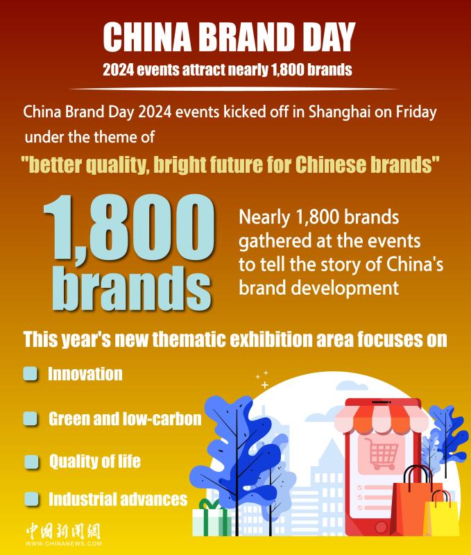 China Brand Day 2024 events kicked off in Shanghai on Friday under the theme of "better quality, bright future for Chinese brands." Nearly 1,800 brands gathered at the events to tell the story of China's brand development.