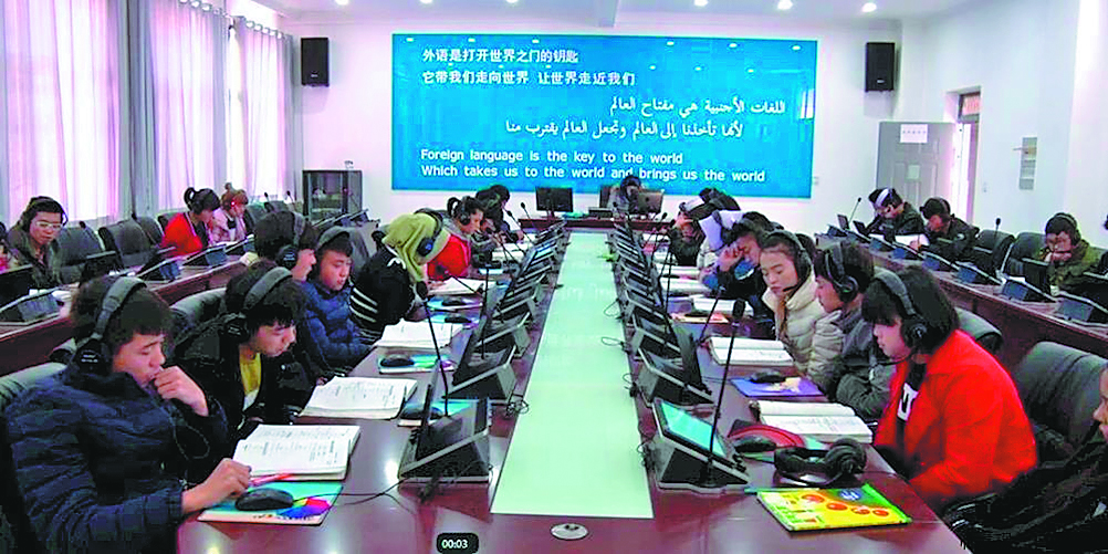 Students majoring in Persian receive training in interpretation at Linxia Modern Vocational College in Linxia. CHINA DAILY