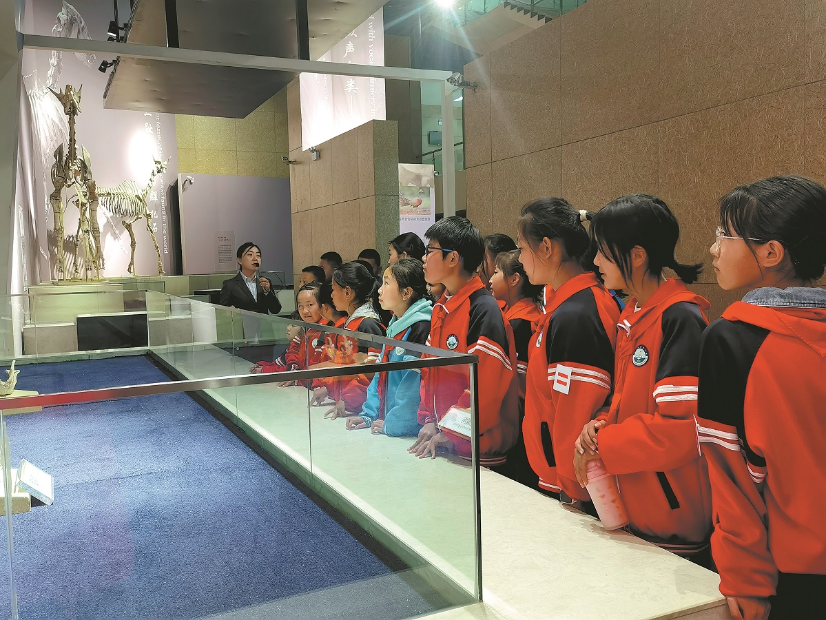 Students of Xiguan Primary School in Linxia's Hezheng county visit Hezheng Paleozoological Museum for research study. CHINA DAILY