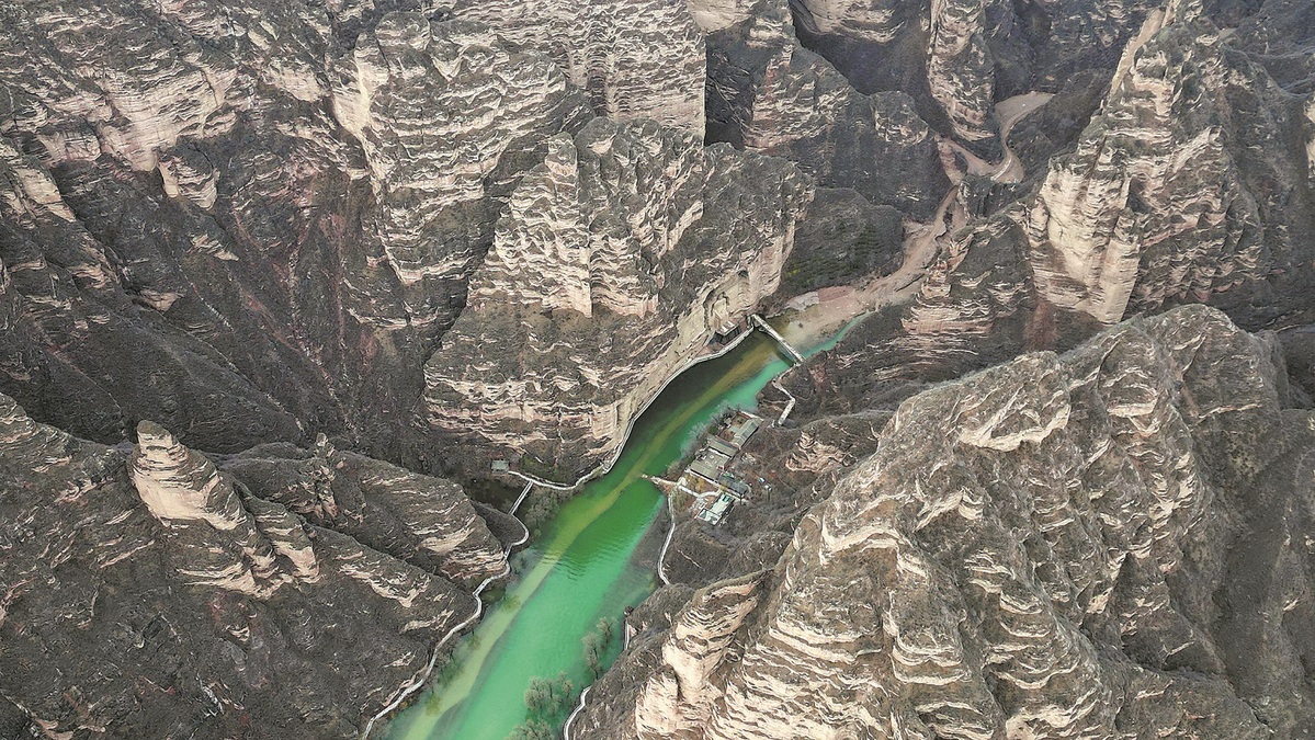 A bird's-eye view of the rare Danxia land formation inside the Linxia UNESCO Global Geopark in Linxia Hui autonomous prefecture, Gansu province. SHI YOUDONG/XINHUA