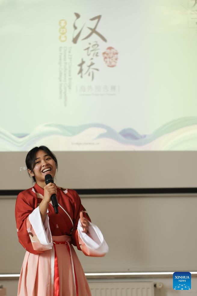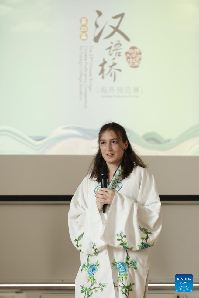 LJUBLJANA, May 15 (Xinhua) -- Thirteen students from Slovenia's high schools and universities participated in the 2024 "Chinese Bridge" Chinese proficiency competition here on Wednesday.
