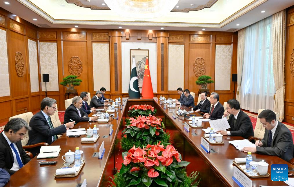 BEIJING, May 15 (Xinhua) -- Chinese Foreign Minister Wang Yi co-chaired the fifth round of the Foreign Minister-Level China-Pakistan Strategic Dialogue with Pakistan's Deputy Prime Minister and Foreign Minister Mohammad Ishaq Dar in Beijing on Wednesday, with the two sides pledging to enhance pragmatic cooperation in various fields.