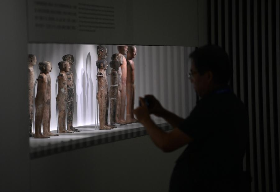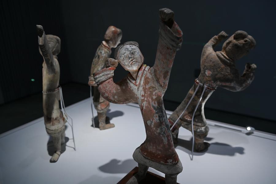 Pottery figurines are displayed at the Qin Han Museum of the Shaanxi History Museum in Xi'an, capital of northwest China's Shaanxi Province, May 6, 2024. (Xinhua/Li Yibo)