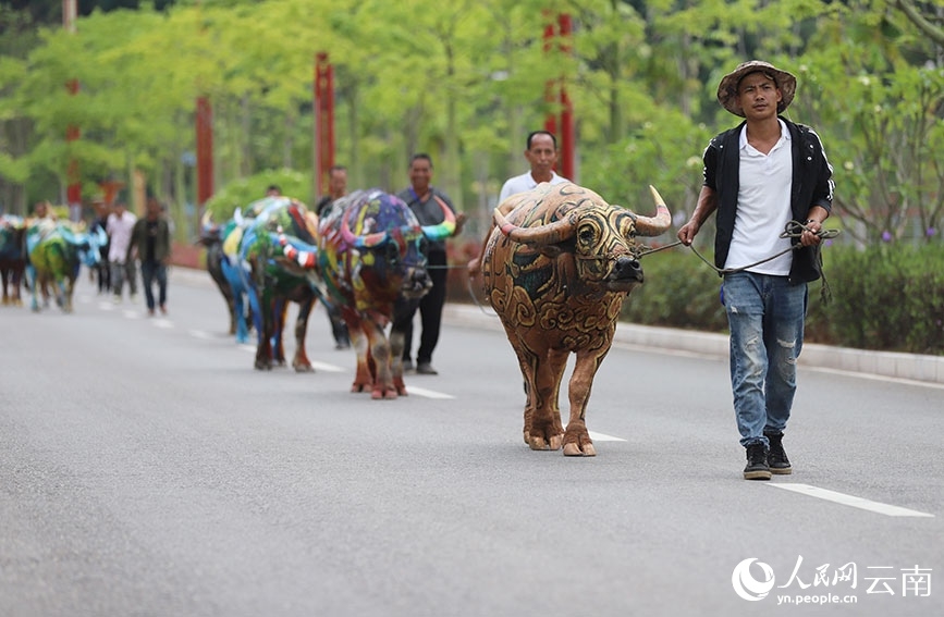 Buffaloes present paintings on their bodies. (People's Daily Online/Hu Zunhui)