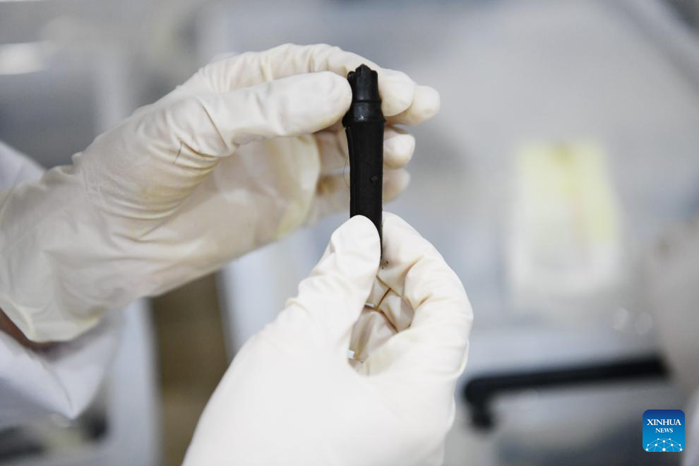 An archaeologist preserves a relic unearthed from the Wuwangdun tomb discovered in Huainan, east China's Anhui Province, May 20, 2024.?(Xinhua/Zhang Duan)