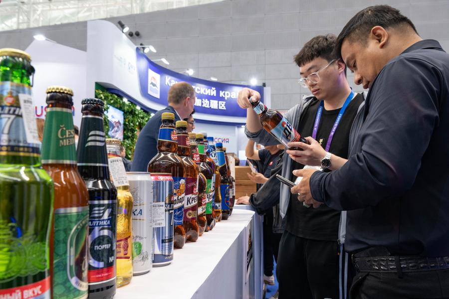 Visitors buy beer from Russia during the eighth China-Russia Expo in Harbin, northeast China's Heilongjiang Province, May 20, 2024. (Xinhua/Xie Jianfei)