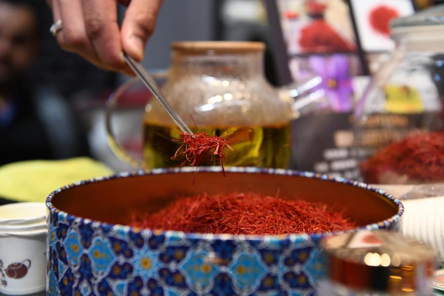 An exhibitor shows saffron from Iran during the eighth China-Russia Expo in Harbin, northeast China's Heilongjiang Province, May 20, 2024. (Xinhua/Wang Song)