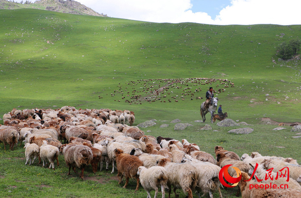 Local herdsmen transfer livestock to the summer pasture in Altay Prefecture, northwest China’s Xinjiang Uygur Autonomous Region. (People’s Daily Online/Han Ting)
