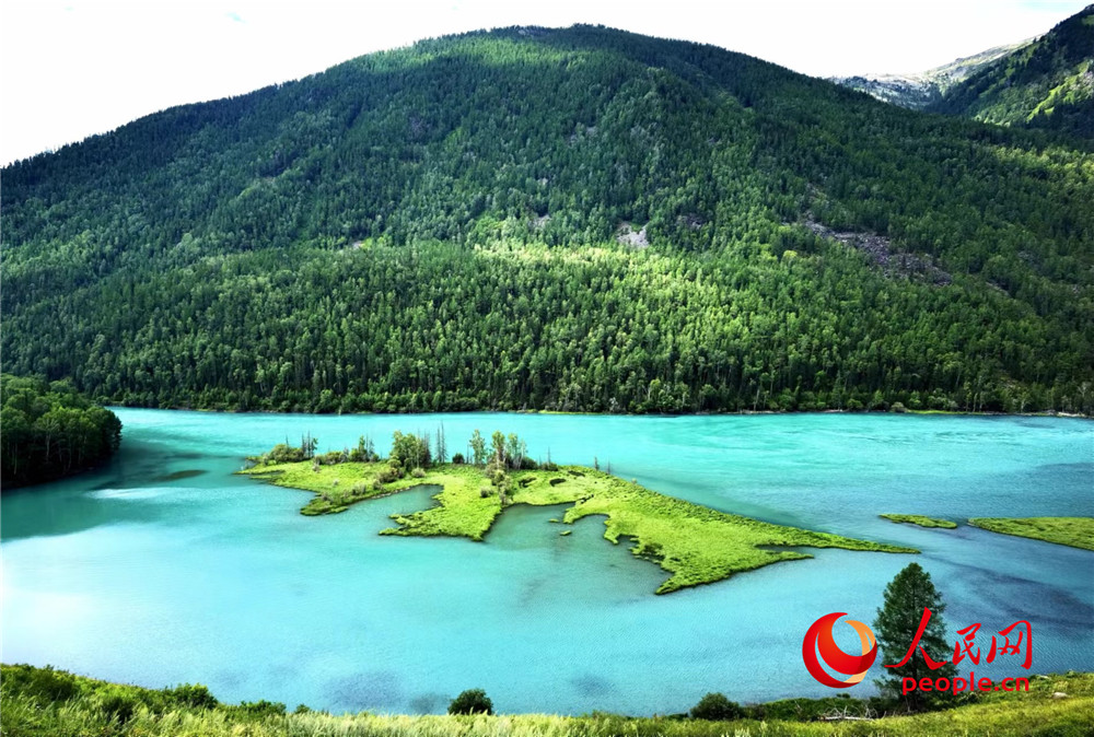 Photo shows the Wolong Bay in Kanas scenic area in Altay Prefecture, northwest China’s Xinjiang Uygur Autonomous Region. Wolong Bay gets its name because there is a dragon-shaped island in the middle of the bay. (People’s Daily Online/Han Ting)