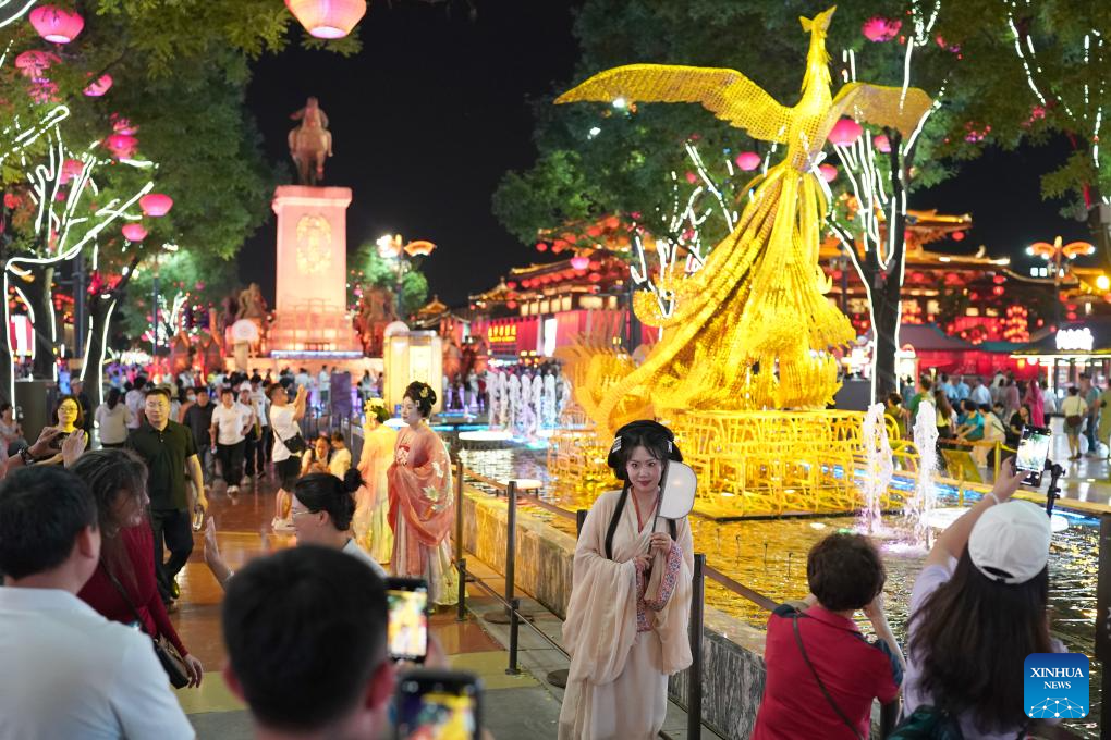 Tourists visit the Great Tang All Day Mall in Xi'an, capital of northwest China's Shaanxi Province, May 20, 2024. Xi'an, one of the ancient capitals in Chinese history, attracts a growing number of tourists in recent years. (Xinhua/Shao Rui)